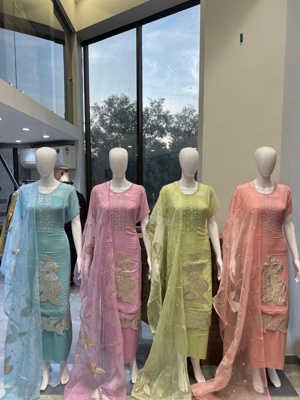 LIGHT GREEN SOFT ORGANZA SUIT WITH PATCH WORK